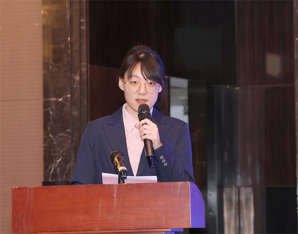 朱晓红为团体标准第一起草单位颁发铜牌。