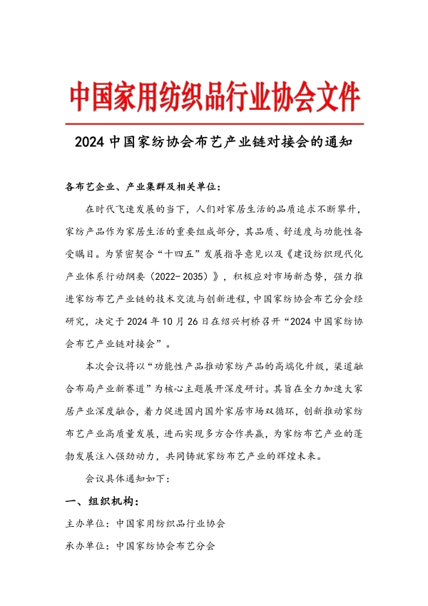 关于召开2024中国家纺协会布艺产业链对接会的通知