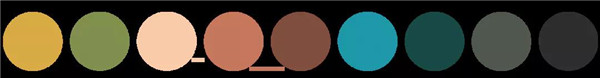 森林色系的中性色有逃离现实之感,墨绿和橄榄绿等带有自然联想属性的色彩加入其中,为人们驱走城市的喧嚣与疲惫。高饱和度的孔雀蓝充满神秘感,作为点缀色效果极佳。自然色调与明亮的互补色进行搭配,顺应了消费者对生活积极、乐观的追求。