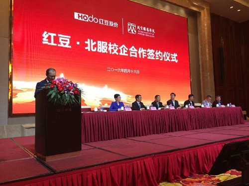 4月16日,红豆股份与北服校企合作签约仪式在无锡红豆杉庄举行,此举标志着红豆股份与服装专业高校——北京服装学院强强联合开始全面战略合作。