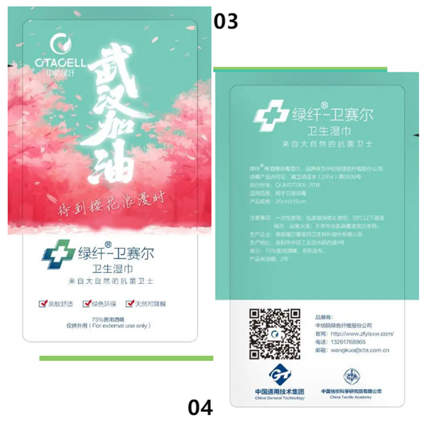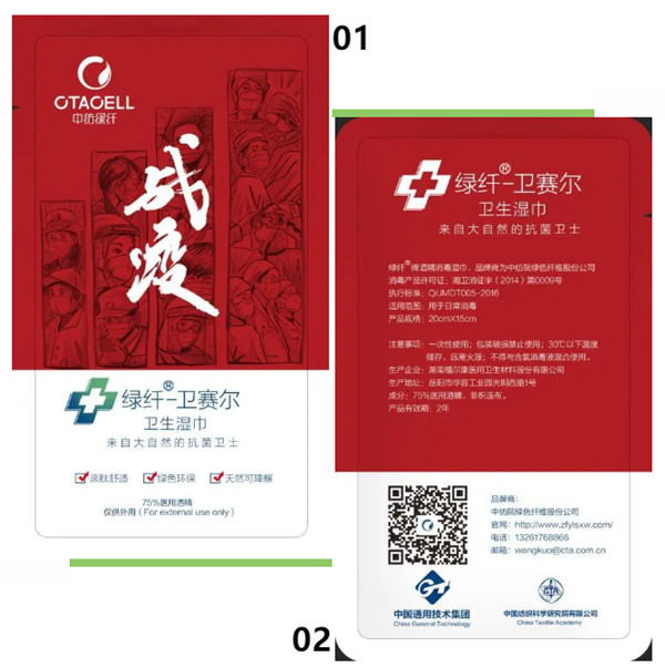 为了做好全国人民的健康卫士,说干就干!开发团队迅速查阅资料、研究标准和相关规定,从消毒液的最优化选择,到非织造布的克重设计,再到最终包装设计,以及如何到达消费者的渠道设计,中纺绿纤以最快速度完成了全方位的产品设计制作和投放渠道开拓工作。