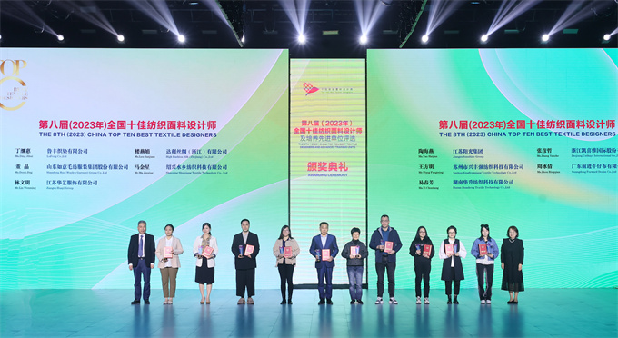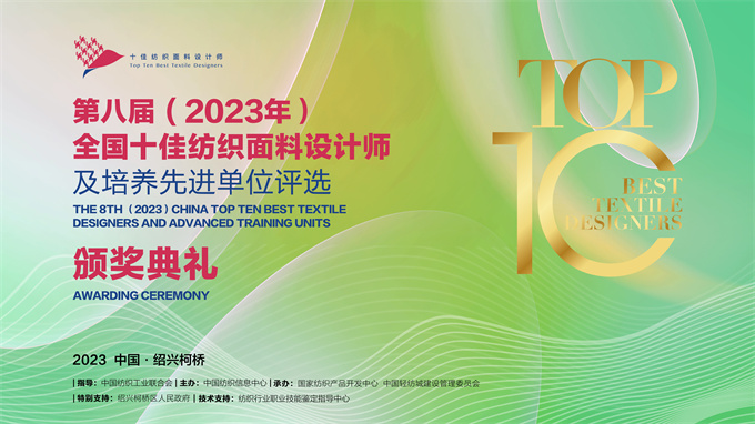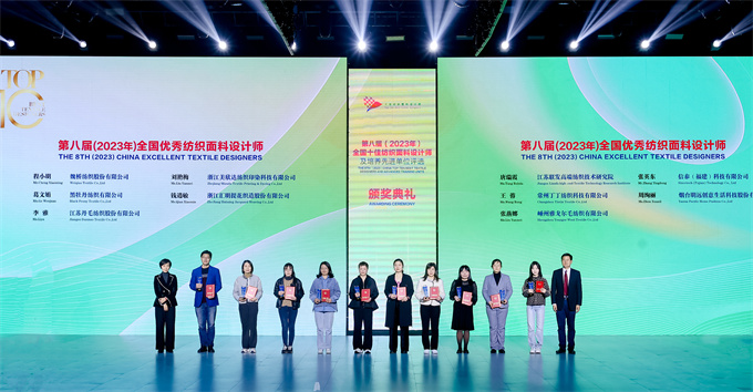 4月25日,第八届(2023年)全国十佳纺织面料设计师及培养先进单位评选颁奖典礼在2023柯桥时尚周(春季)启幕式上举行。 “金柯桥”奖、全国十佳纺织面料设计师、全国优秀纺织面料设计师及全国纺织面料设计师培养先进单位获奖者齐聚浙江绍兴柯桥尽享殊荣一刻。