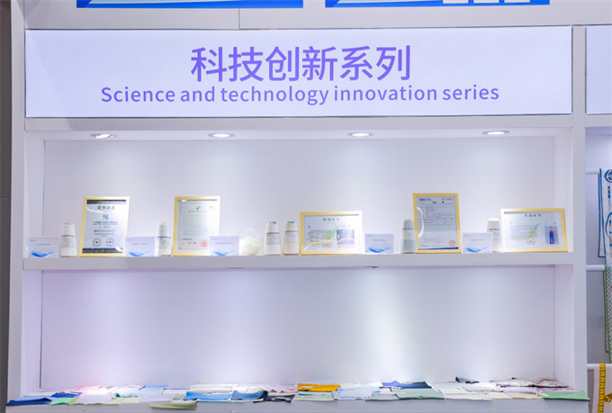 魏桥纺织在纺博会上重点展示了一批既能引领市场品类创新,又有关键技术突破的亮点产品。比如魏桥纺织与东华大学合作开发的微纳米镶嵌纺功能性产品,可通过功能性微纳米纤维与普通纤维附着镶嵌,赋予产品优异持久的抑菌、防螨效果;与长三角国家技术创新中心合作开发的陶瓷发热产品,可通过远红外辐射升温、吸光蓄热,在秋冬保暖内衣、冲锋衣、防寒服等领域有很好的表现;生物基合成纤维系列则通过染整加工技术的创新,攻克了手感易变硬的技术难题,实现了产品创新和商业价值的有机结合。此外,一次织造成型家纺系列、高品质再生纤维素系列、新型复合纺纱系列、PTT 弹性短纤维系列均采用专利技术,使织物呈现出更好的性能、更舒适的手感和更多元化的品类适应性,部分创新成果为行业内首创。