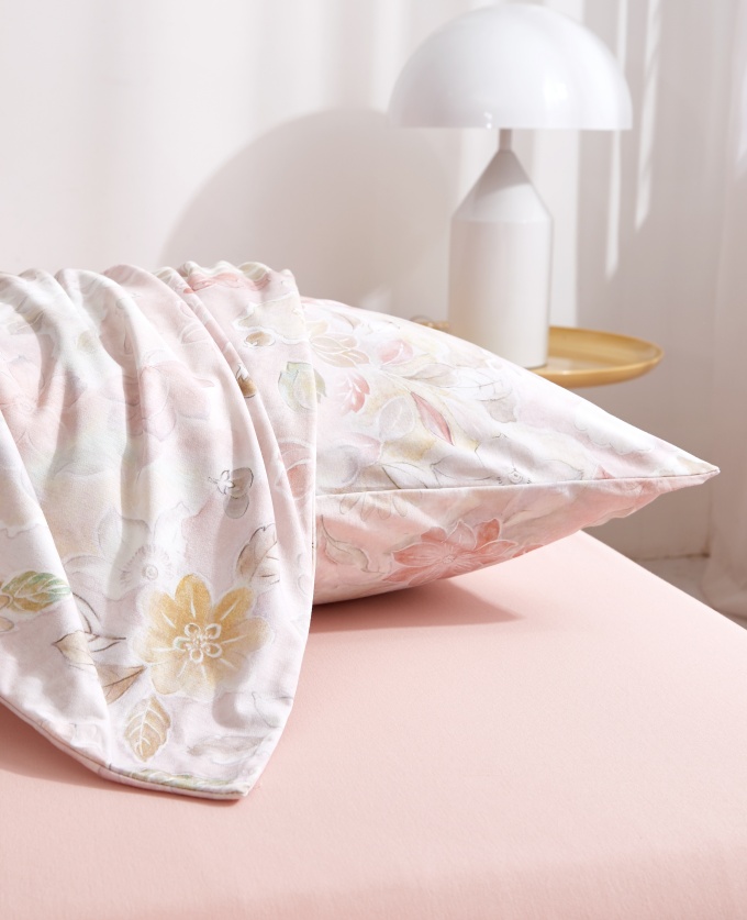 奈特绵®全棉针织磨毛四件套,采用双面针织组织结构,面料内部形成丰富微孔,有效锁住空气,提升保暖性。在面料处理方面,产品采用抛光酶前处理工艺与碳素超密磨毛后整理技术,使面料触感细腻柔糯,亲肤暖而不燥,且不易起球。面料兼顾了针织材质的柔软透气与尺寸稳定,翻身时安静无摩擦感。它避免了传统液氨面料的冰凉触觉,以更亲肤的体感和更具优势的性价比,带来蓬松、柔暖且不厚重的包裹体验。