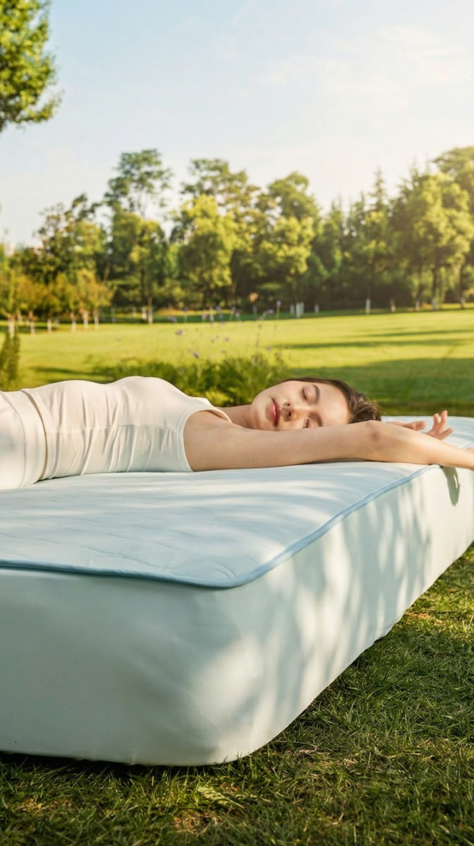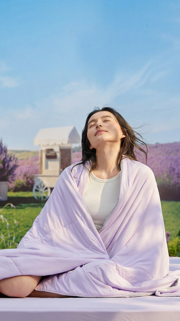 绘睡呼呼小冰被/小冰席系列,解决夏夜汗湿闷燥、体感不适的睡眠困扰,以材料与工艺创新打造凉感、透气、吸湿兼具的夏日舒睡体验。产品以高导热锦纶为基材,导热系数约为棉的4倍,快速散热降温;采用针织面料,柔软亲肤、散热更佳。同时填充奶嘴级硅胶发泡材质,97%开孔率使透气性为常规絮片3倍以上,快速排湿干爽。硅胶具备微重力悬垂感,助力深睡抗扰。产品达GB31701-2015A类婴童级,抗菌低敏、无甲醛无荧光剂,安全亲肤,全方位打造舒适睡眠环境。