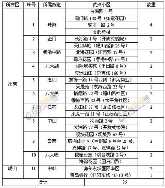 附:市南区、崂山区26处旧衣物回收箱试点小区