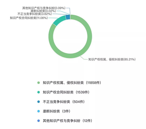 1、知识产权侵权类纠纷占比较大