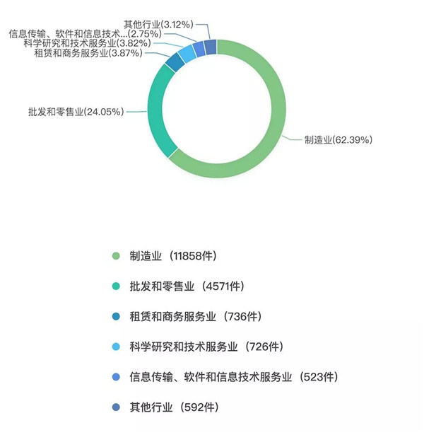 数据分析:从行业统计的图表中我们可以看出,在整个纺织行业中,最易发生纠纷的是制造业和批发零售业,但还是以制造业最为频发,制造业所占比的纠纷有62.39%,而制造业大量存在中小型企业,生产制造环节所涉及的法律问题和法律风险较多,数据也体现出中小型纺织企业在风险防控、应对纠纷方面较为薄弱。