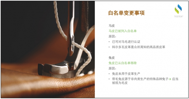 LEATHER STANDARD在更加严格的限量值、新增受监测物质、新增物质方面与STANDARD 100的更新内容保持一致,不同之处在于白名单的变化。