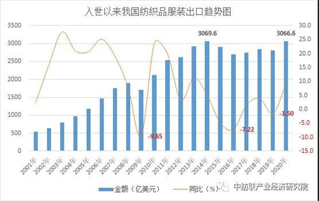 纺织品服装出口3000亿美元左右,稳居世界第一