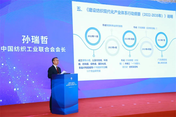 为推动中国纺织行业实现高端化、智能化、绿色化、融合化发展,全面建成具有完整性、先进性、安全性的纺织现代化产业体系,中国纺织工业联合会自2022年11月启动《建设纺织现代化产业体系行动纲要(2022-2035年)》(以下简称《行动纲要》)研究和编制工作,并于2023年8月27日中国纺联五届二次理事会暨五届三次常务理事会议期间正式发布。