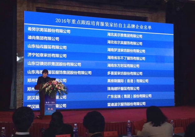 曹学军致辞并发布2016年重点跟踪培育服装家纺自助品牌企业名单