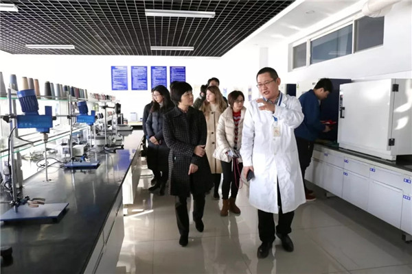 研究院院长孙红玉在给大家讲解了研究院的研究成果之后,和大家一起在研究院参观了废旧纺织品回收利用的成果、功能性面料开发、印染助剂的制造以及资源回收利用制作成轮胎的产业化成果等。品牌总经理高鹏、实验室主任杨玉华带领学习团一行参观了实验室,并观看了资深研究员做的色牢度检验、缩水率检验、起毛起球检验、甲醛及PH值检测等项目,以高标准严要求检测每一件出厂产品。