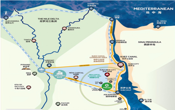 埃及苏伊士运河经济区苏伊士运河经济区(Suez Canal Economic Zone,简称SCZone)——是埃及政府于 2015 年设立的国家级经济特区,覆盖苏伊士运河南北两岸,包括艾因苏赫纳(Ain Sokhna)、东塞得港(East Port Said)等关键节点,西距开罗约120公里,东接红海,是连接亚欧非三大洲的交通要冲。总面积 461 平方公里,涵盖6个港口(如苏赫纳港、阿达比亚港)、4个工业区(如西坎塔拉、东伊斯梅利亚)及多个物流园区,旨在依托苏伊士运河的战略地理位置,打造全球航运、工业和物流枢纽。目前园区有15家开发商,落地投资项目达534个,创造10万个就业岗位,在自贸区将享受100%的关税免除,覆盖1亿人口的埃及市场,并辐射20亿人口的国际消费市场。